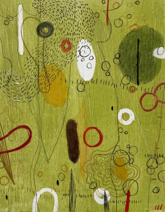 Monotype with mixed media handwork